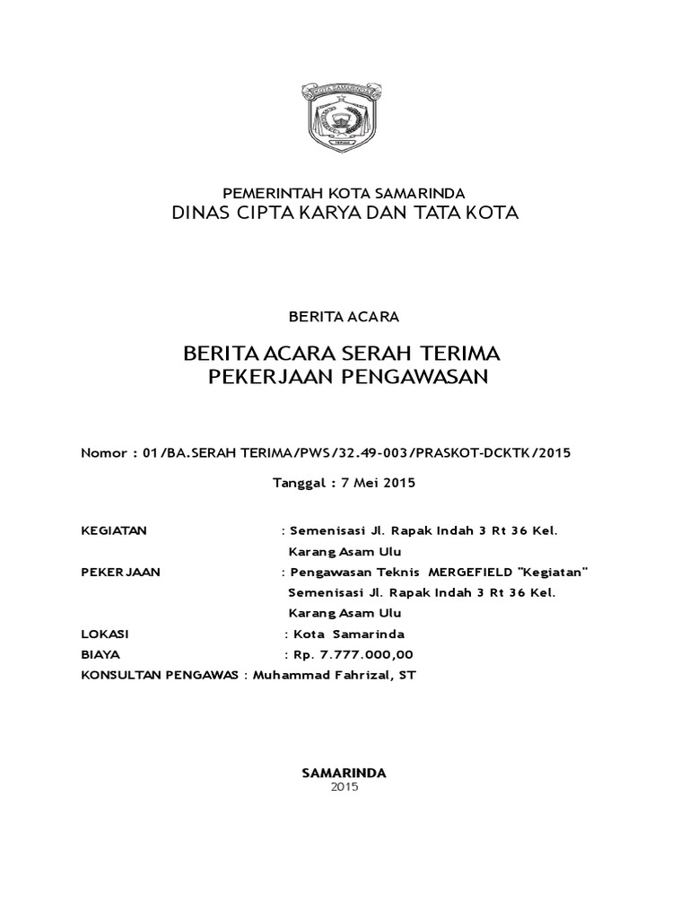 Surat serah terima pekerjaan merupakan sebuah surat yang didalamnya berisi informasi tentang sertah terima pekerjaan yang dilakukan antara pihak yang menyerahkan maupun juga pihak yang menerima. 0 ratings0% found this document useful (0 votes). Jika kedua belah pihak telah setuju dengan serah terimanya maka tinggal memberikan tanda tangan. Home/edukasi/contoh berita acara serah terima, rapat, dan kejadian. Dan dengan surat ini juga berarti telah menandakan bahwasanya pada hari itu pihak.