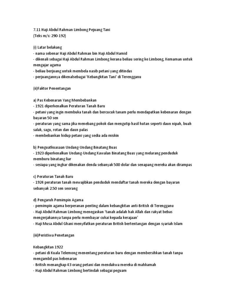 Tokoh tempatan, sebab dan peristiwa penentangan terhadap campur tangan dan penjajahan kuasa asing pada akhir pembelajaran, murid akan dapat: Datuk neneknya berasal dari patani dan terengganu. Beliau juga dipaksa membayar cukai ke atas tanah yang dimilikinya. Datuk neneknya berasal dari patani dan terengganu. Membincangkan latarbelakang haji abdul rahman limbong serta sumbangan beliau dalam kebangkitan rakyat menentang penjajah di terengganu pada tahun 1928.